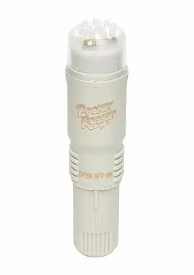 The Original Pocket Rocket is simply the most powerful and reliable massager in the world! Designed to stimulate the clitoris and other sensual spots this toy is made for external use not for insertion. Three metal balls deliver powerful vibrating experience while the bottom dial controls the function and the speed of the massager. Get ready for blast off! Non-phthalate body-safe ABS plastic. Ivory.