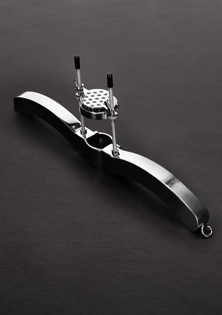 The Ultimate Humbler has taken this classic original ball stretcher to the next level with the added ball spreader and ball crusher device. The Ultimate Humbler stainless steel has unique features and 4-in-1 functionality 1. It is lockable it cannot be removed off the balls without keys! 2. Can be used as a simple humbler as the whole stretching part can be removed. 3. The stretching ring gives option to as just the strictness of the humbler 4. The flat side of the press plate is for lighter ball torture5. The spiked side of the press plate is for really bad boys and sissies. 🙂 6. The end of the humbler has two attaching point for further bondage options. Chaining the ankles or the wrist to the to end of the humbler is quite restricting