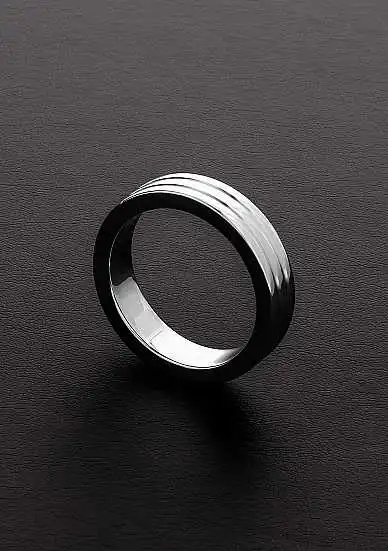 Solide geribde cock ring van roestvrij staal. Deze ring helpt je erectie te verlengen en voegt tegelijkertijd wat gloed toe.