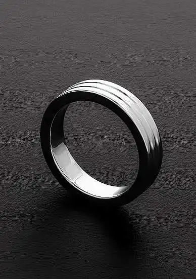 Solide geribde cock ring van roestvrij staal. Deze ring helpt je erectie te verlengen en voegt tegelijkertijd wat gloed toe.