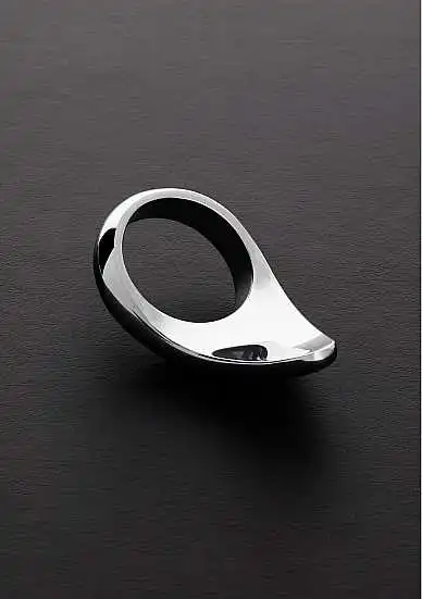 Roestvrij stalen prachtig gepolijste traanvormige cock ring. De verlengde vorm voegt een mooie druk toe aan het perineum die gestimuleerd wordt bij elke beweging van de penis.