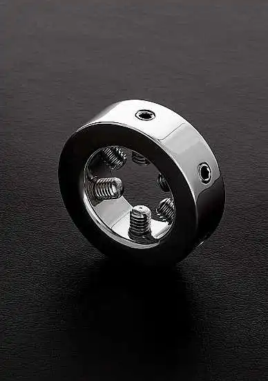 Deze Throncrown is een roestvrij stalen ring die speciaal is ontworpen voor marteling van de penis. Schuif de ring op zijn plaats over je penis – de meeste mensen plaatsen het vlak achter de eikel. Met de bijgevoegde inbussleutel kan je de scherpgepunte schroeven strak draaien. Als de scherpe punten eenmaal op hun plaats zijn kan de ring nergens heen en zou hij niet afvallen. De knijpende schroeven zorgen ervoor dat je je stijve niet kwijtraakt.