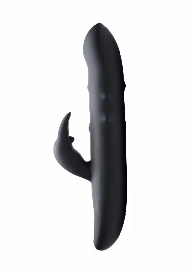 Savor the sensations from a buzzing bunny and the silky-smooth shaft as two very different sensations combine for one incredible blended orgasm. This premium silicone vibrator features 3 speeds of thrumming and 7 patterns of throbbing as well as an ample shaft that will massage you with undulating beads and 3 vibrating speeds of its own. The elegant gem-adorned control panel is simple to use. A protruding bunny nose will pinpoint your clit for vibration while the ears will flutter around it for an entirely different sensation. This pleasure tool is magnetically rechargeable and waterproof so that you can treat yourself in the bath or shower. The phthalate-free material is non-porous for an easy clean with mild soap or toy cleaner. Avoid use with silicone lubricants.