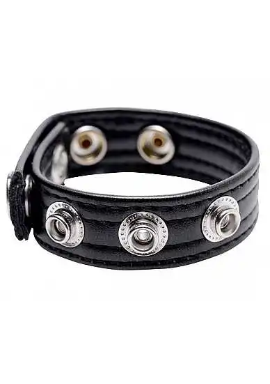 Maintain a harder stronger and more sensitive erection when you wrap this snap-on cock ring around your cock and balls! Restrict blood flow by tightening this comfortable and attractive strap around your package creating a bulging hard-on that will last through your most tantalizing endeavors. Solo or with a partner you will love the enhanced sensation of every stroke thrust suck and fuck! When you are ready to ejaculate just release the snap to quickly and effective remove the cock ring.